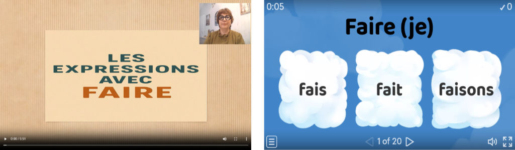 There are 32 lessons in the course. Each module follow features a video lesson by Pascale Robson which you listen to and repeat where prompted. You can go entirely at your own pace – pausing/rewinding/replaying the videos until you are ready to move on. There then follows a series of interactive quizzes to test your understanding of the lesson you have just watched. In addition, each lesson has downloadable pdf file featuring all the key vocabularly and grammar you have learned from that lesson.